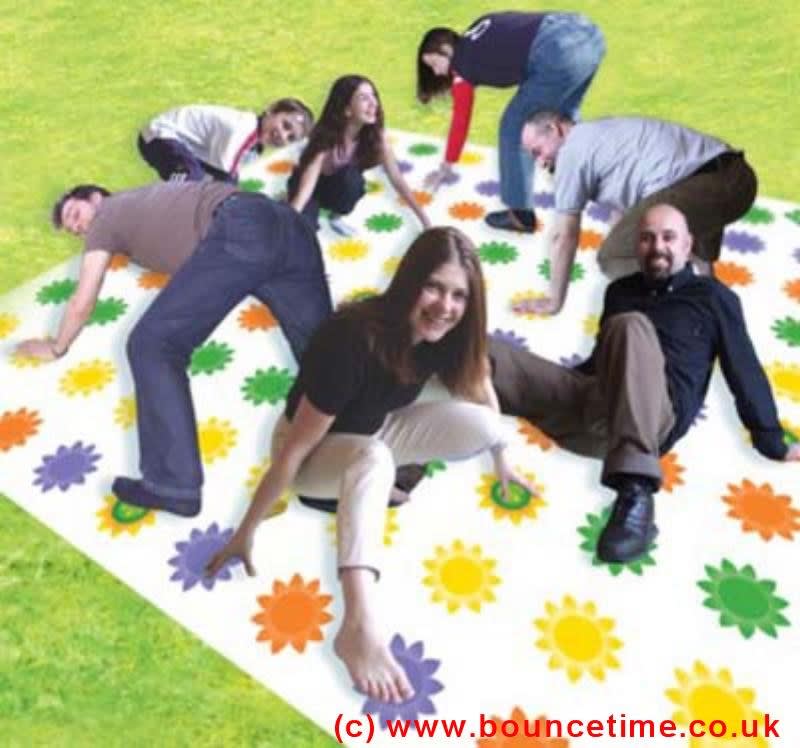 Throw the two giant inflatable dice to find out which part of your body you have to place on which colour flower.