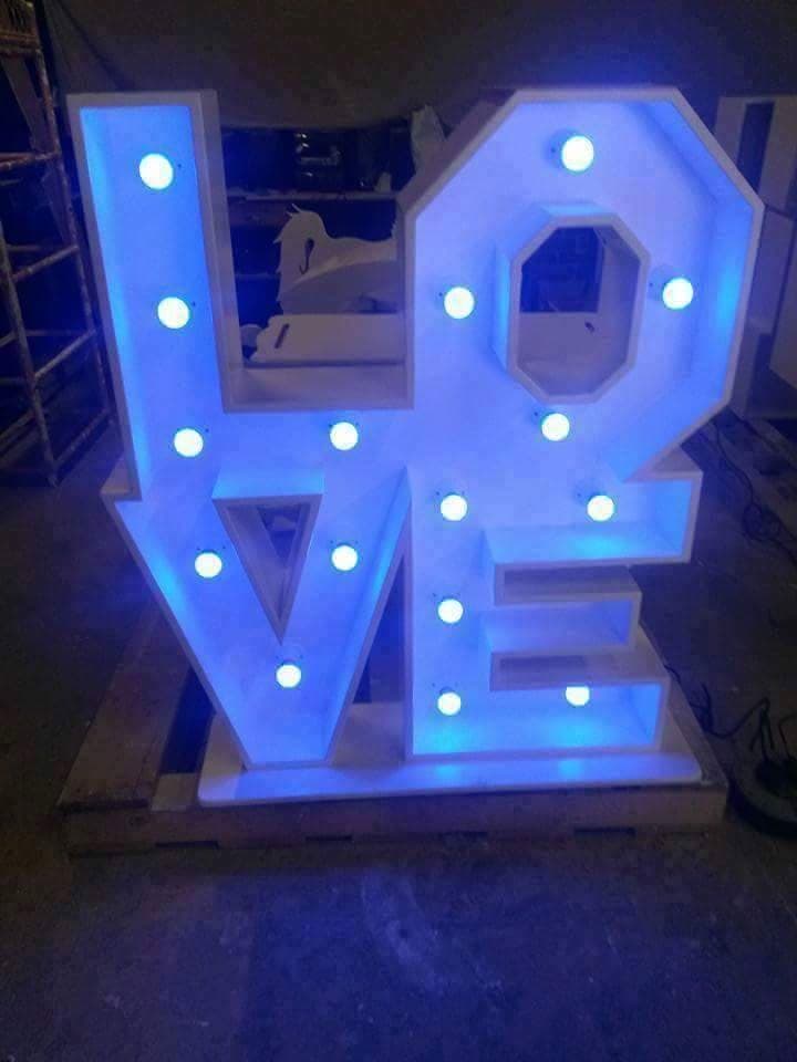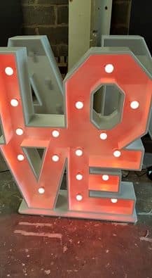 Our 4ft free-standing Love Letter block is a beautifully handcrafted piece, made by one of the UK's leading cabinet makers. This wooden creation features the word "LOVE" and is equipped with a fully PAT tested LED light system.