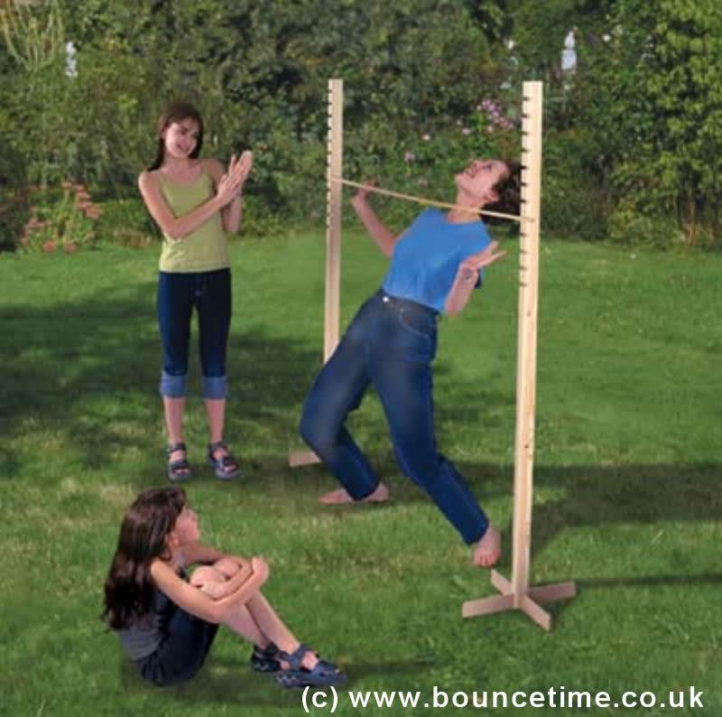 As you improve your limbo skill and manage to drop the cross bar lower, with 14 different height options starting from 1m 45cm the distance between the pegs reduce to take account for the extra difficulty.