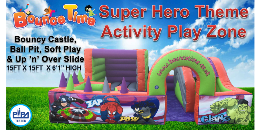 Ensure a memorable and exciting experience for the little ones at your next event with our Action Super Hero Theme Activity Adventure inflatable play zone!