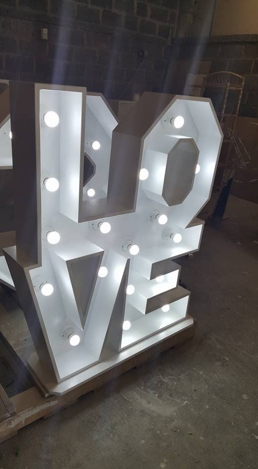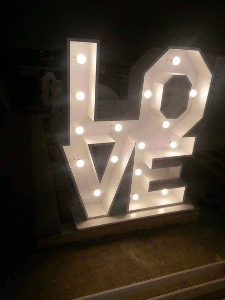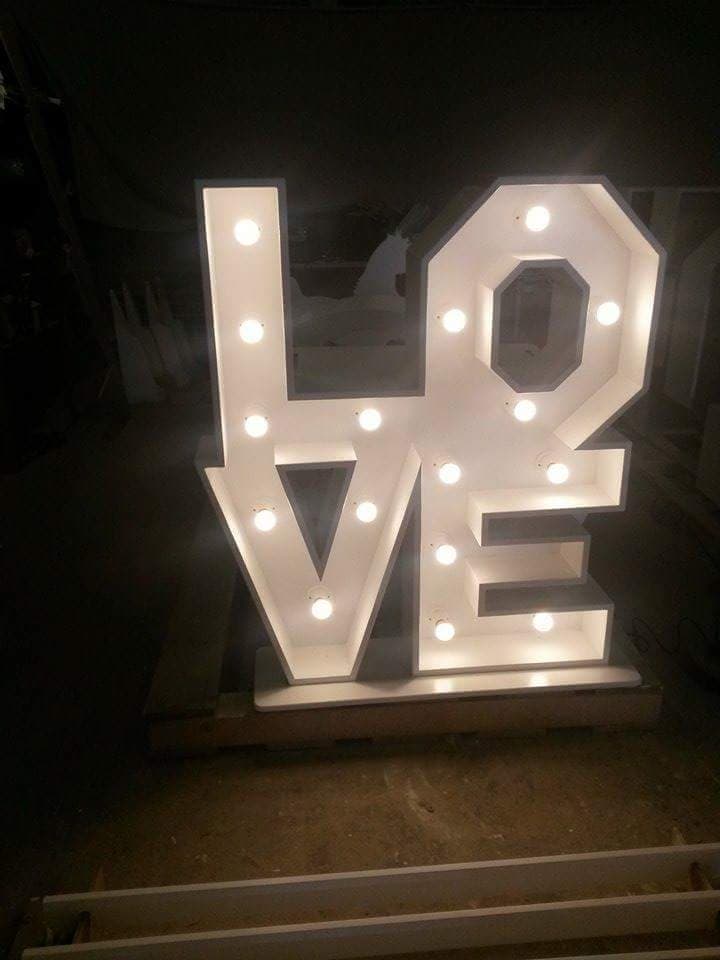 Our 4ft free-standing Love Letter block is a beautifully handcrafted piece, made by one of the UK's leading cabinet makers. This wooden creation features the word "LOVE" and is equipped with a fully PAT tested LED light system.
